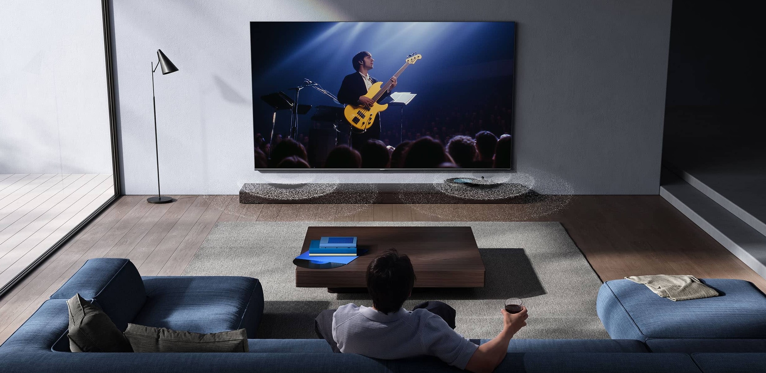 Телевизор оснащён встроенной аудиосистемой мощностью 30 Вт, поддерживающей технологии Dolby Audio и DTS:X, что обеспечивает объёмное и насыщенное звучание при просмотре фильмов и сериалов. Устройство воспроизводит мультимедиа с USB-накопителей и поддерживает популярные форматы видео, аудио и изображений, включая MPEG, H.264, H.265, MKV, FLAC, AAC и OGG.